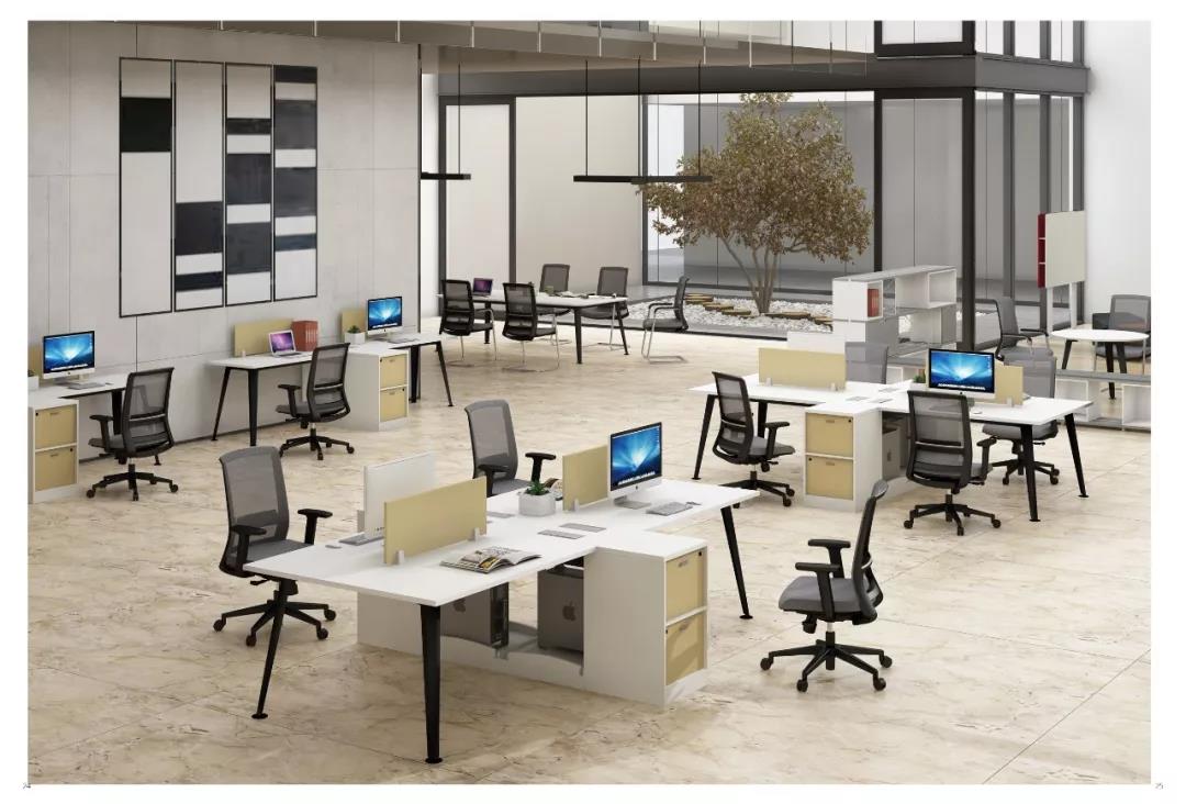 辦公桌椅的擺放不能隨意,要根據(jù)辦公空間的實(shí)際大小來(lái),如果是小型辦公室,就不宜選擇大尺寸的辦公桌椅,同時(shí)也要考慮工作位之間的互不干擾性,工位間保持合理的距離,設(shè)置不宜過(guò)于緊湊,還要留出活動(dòng)空間,過(guò)于狹窄的話很容易導(dǎo)致行走間相互碰撞,寬敞的空間也會(huì)讓人更加舒適。