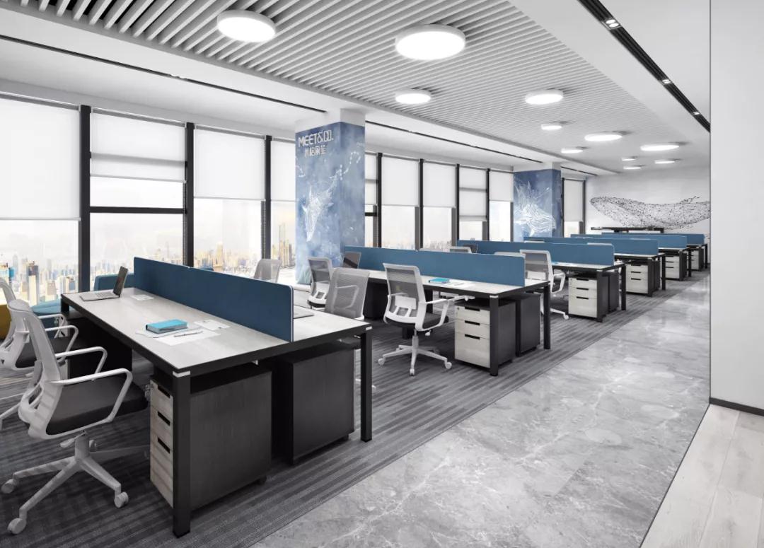 每人至少需要60cm寬度,桌深建議70-90cm(確保文件擺放和舒適度),中央走道至少保留1.2米寬度。