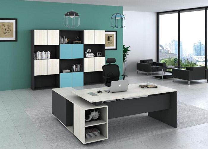 辦公家具班臺鋼腳采用直角和直行臺面相結合,達到材料與外觀設計的緊密結合,不同規格的側臺設計簡單,使用方便。臺面可配合不同規格的側臺,可根據辦公空間的不同需求進行組合搭配,讓您的空間更靈活多變。