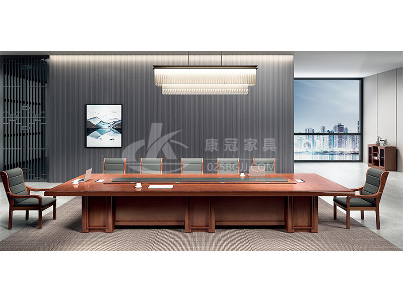 實木會議桌一體式矩形行政延續(xù)了該系列特征,既是電源滑蓋又是置物托盤,利用立體空間增加功能性;