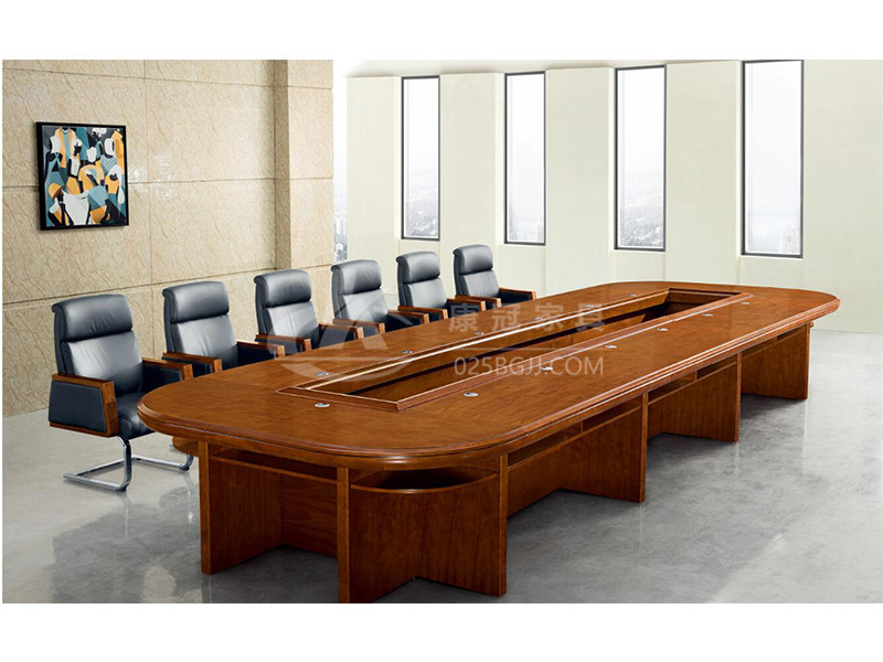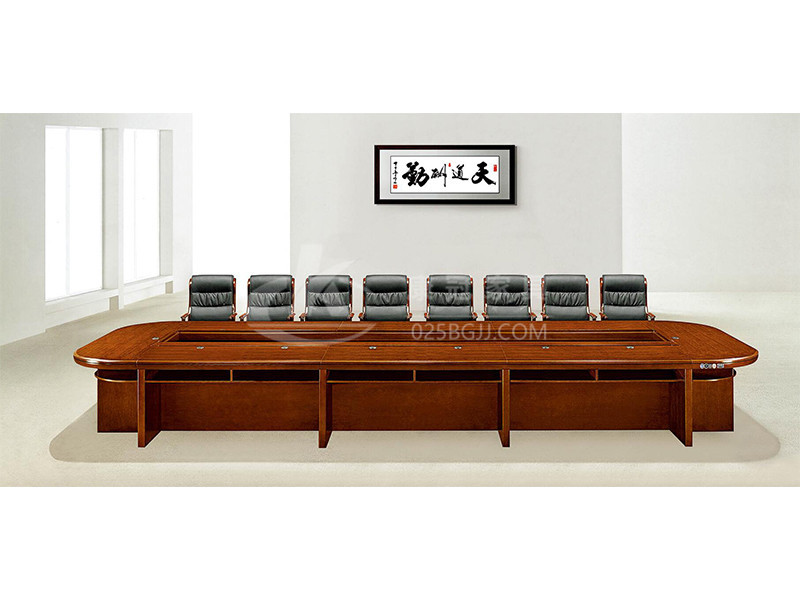 實木會議桌一體式矩形行政延續了該系列特征,既是電源滑蓋又是置物托盤,利用立體空間增加功能性;