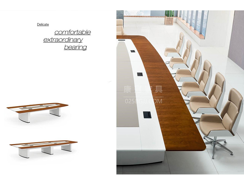 實木會議桌一體式矩形行政延續了該系列特征,既是電源滑蓋又是置物托盤,利用立體空間增加功能性;
