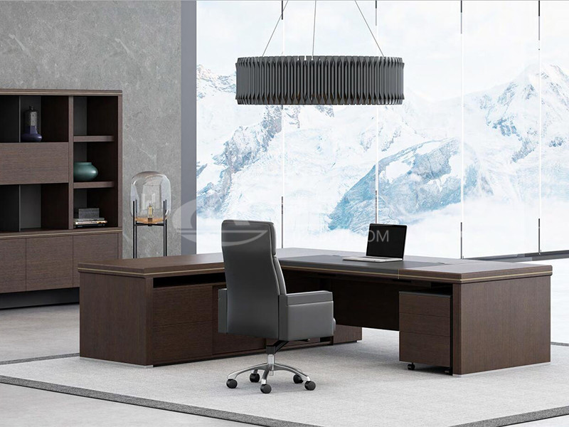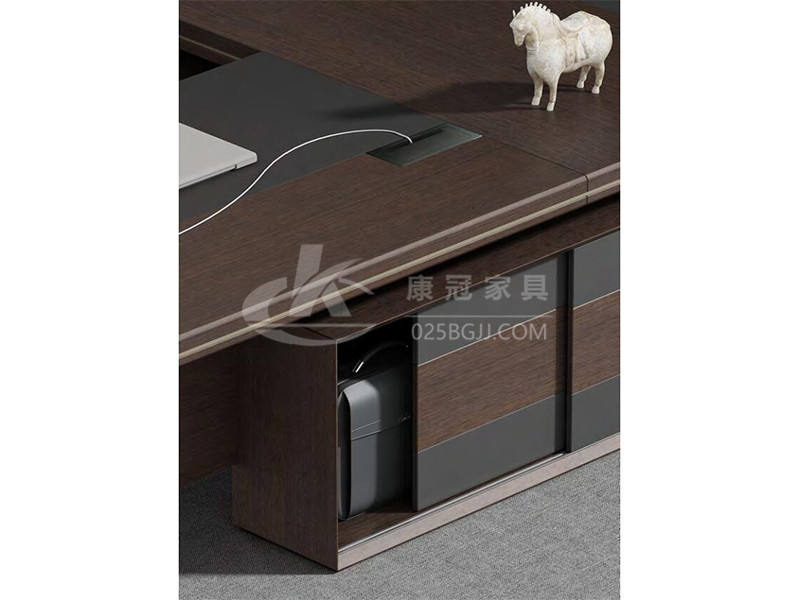 此款老板桌以現代風格結合傳統厚重的設計體現了現代、時尚、實用,但又有朝氣息,領資系列方正的外觀給人以穩重大氣感,側柜有效結合收納與走線功能;