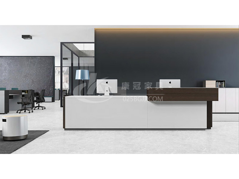 除了接待服務外,還擔負著很多附屬功能,如企業(yè)形象、服務態(tài)度都將作為第一反應記錄在員工與客戶的記憶中。作為企業(yè)的“玄關(guān)”,在形象展示上有著無可厚非的重要性??裳由鞛椤爸甘尽⒁龑А敝?;在為人與人之間的交流溝通架起共性的橋梁同時,其真正目的是指示、引導人們在規(guī)劃空間內(nèi)的進一步交流與溝通。同時在企業(yè)形象與產(chǎn)品展示功能上亦扮演著重要角色。板式前臺,四邊倒角幾何,采用矩形管焊接結(jié)構(gòu),L型鋼件固定,內(nèi)置隱藏LED燈組,人性化設計,外觀大氣簡潔,方便接待人員與客戶之間的交流溝通。