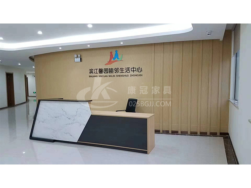 除了接待服務外,還擔負著很多附屬功能,如企業(yè)形象、服務態(tài)度都將作為第一反應記錄在員工與客戶的記憶中。作為企業(yè)的“玄關(guān)”,在形象展示上有著無可厚非的重要性。可延伸為“指示、引導”之意;在為人與人之間的交流溝通架起共性的橋梁同時,其真正目的是指示、引導人們在規(guī)劃空間內(nèi)的進一步交流與溝通。同時在企業(yè)形象與產(chǎn)品展示功能上亦扮演著重要角色。板式前臺,四邊倒角幾何,采用矩形管焊接結(jié)構(gòu),L型鋼件固定,內(nèi)置隱藏LED燈組,人性化設計,外觀大氣簡潔,方便接待人員與客戶之間的交流溝通。