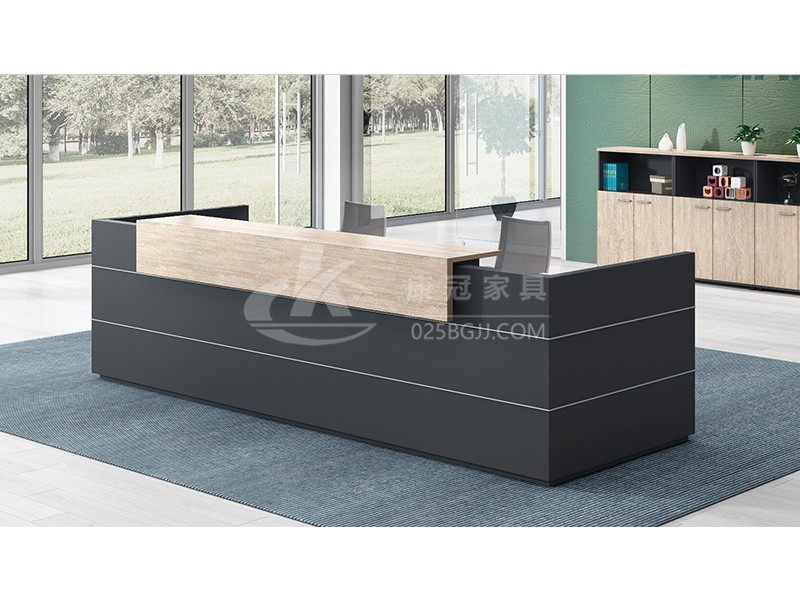 除了接待服務外,還擔負著很多附屬功能,如企業形象、服務態度都將作為第一反應記錄在員工與客戶的記憶中。作為企業的“玄關”,在形象展示上有著無可厚非的重要性。可延伸為“指示、引導”之意;在為人與人之間的交流溝通架起共性的橋梁同時,其真正目的是指示、引導人們在規劃空間內的進一步交流與溝通。同時在企業形象與產品展示功能上亦扮演著重要角色。板式前臺,四邊倒角幾何,采用矩形管焊接結構,L型鋼件固定,內置隱藏LED燈組,人性化設計,外觀大氣簡潔,方便接待人員與客戶之間的交流溝通。